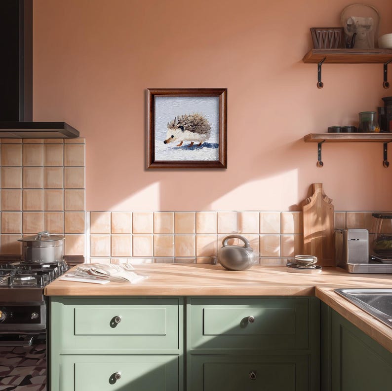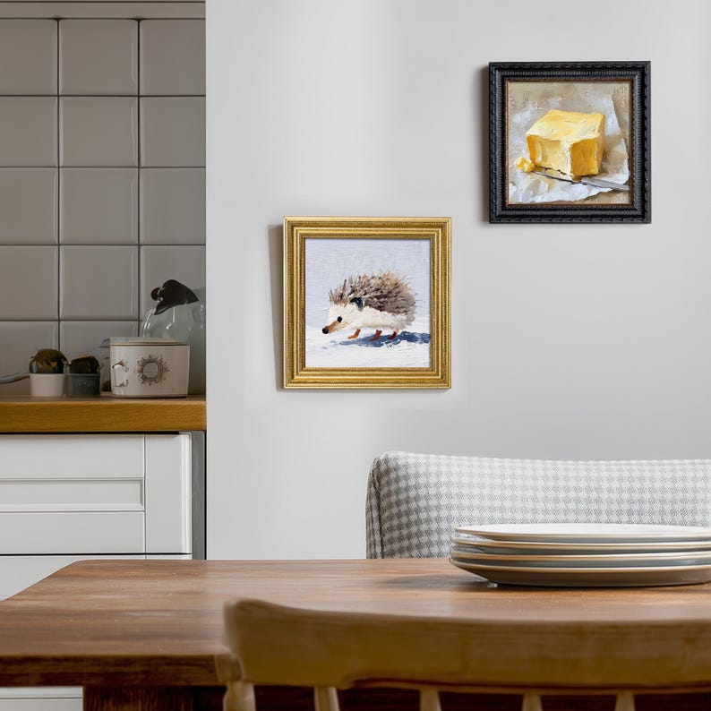 Hand-Painted Hedgehog Oil Painting: Living Room Wall Art Decor, 5X5 Housewarming Gift