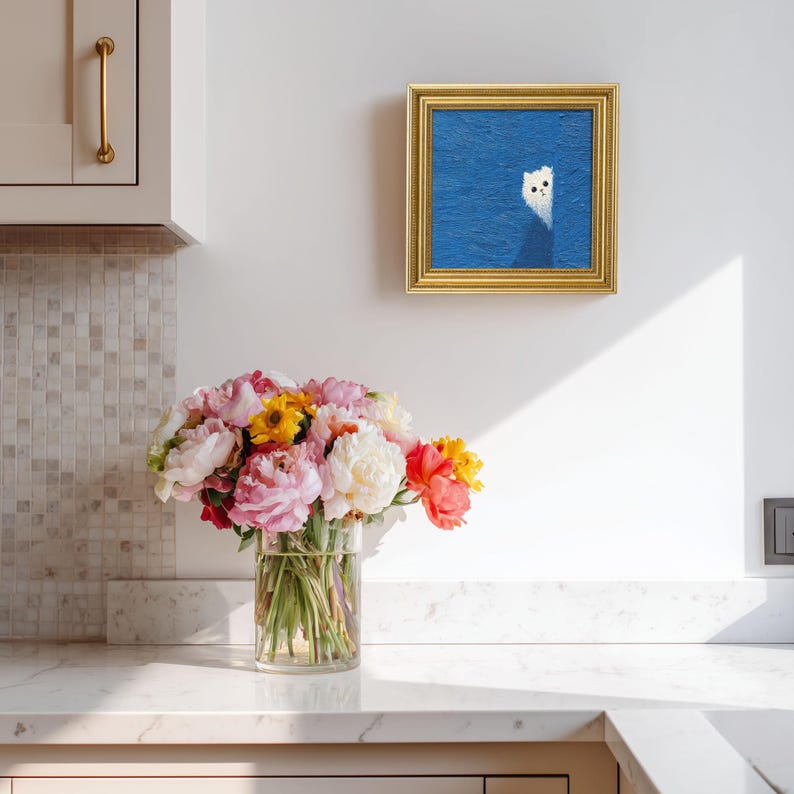 Hand-Painted Peeking Cat Oil Painting: Living Room Wall Art Decor, Kitty Portrait Gift