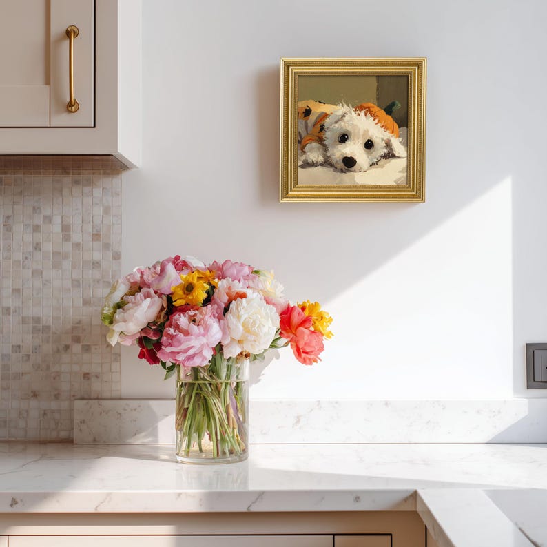 Hand-Painted Puppy Oil Painting in Gold Frame: Dog Lover Gift