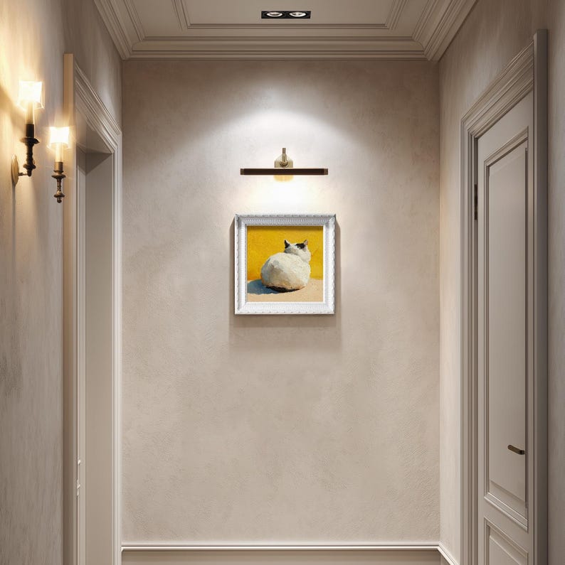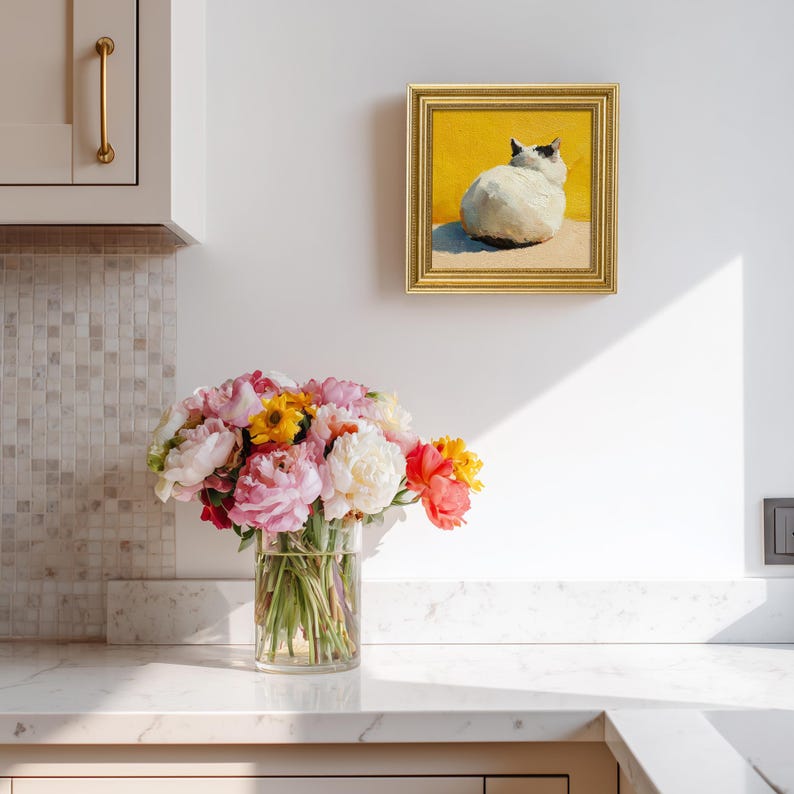 Hand-Painted Round Cat Oil Painting: Living Room Wall Art Decor, Kitty Portrait Gift