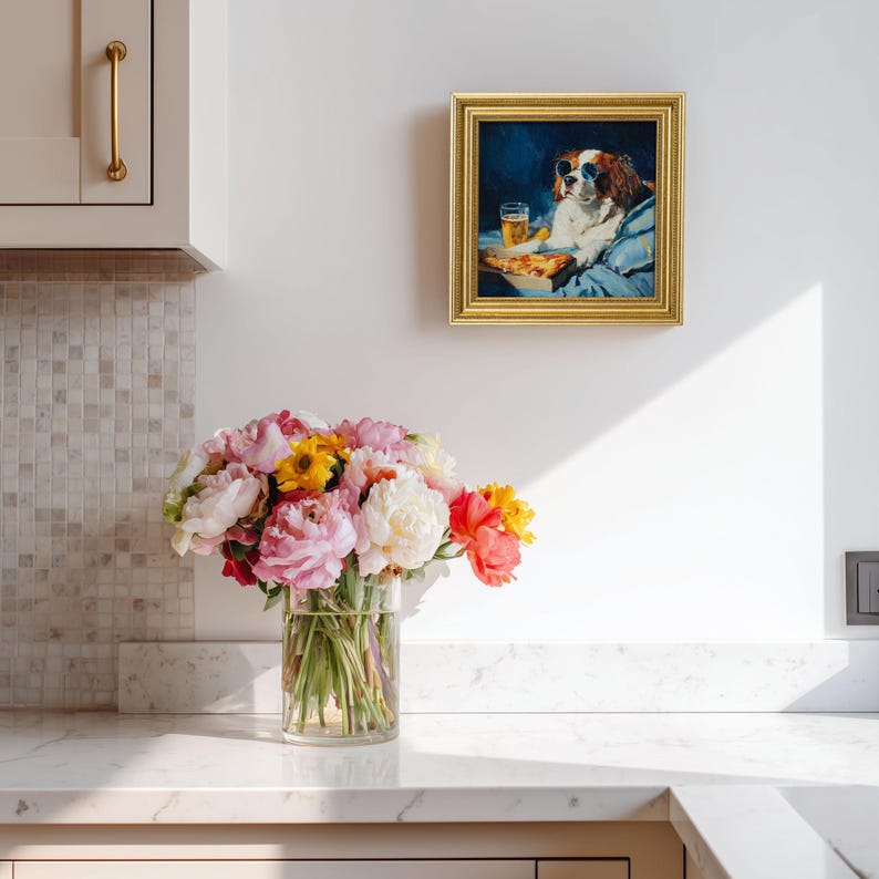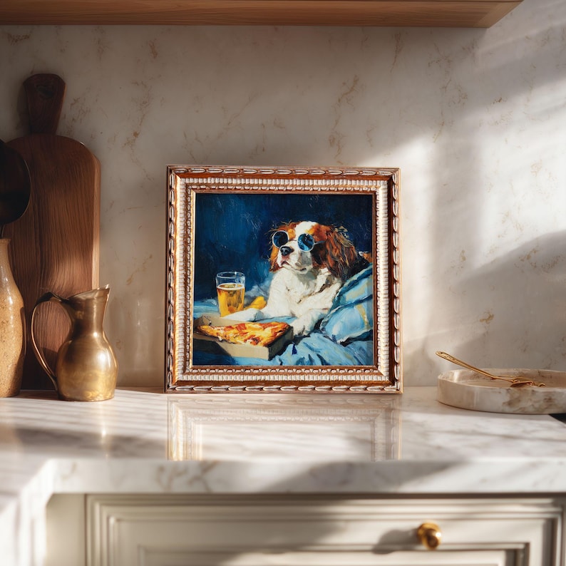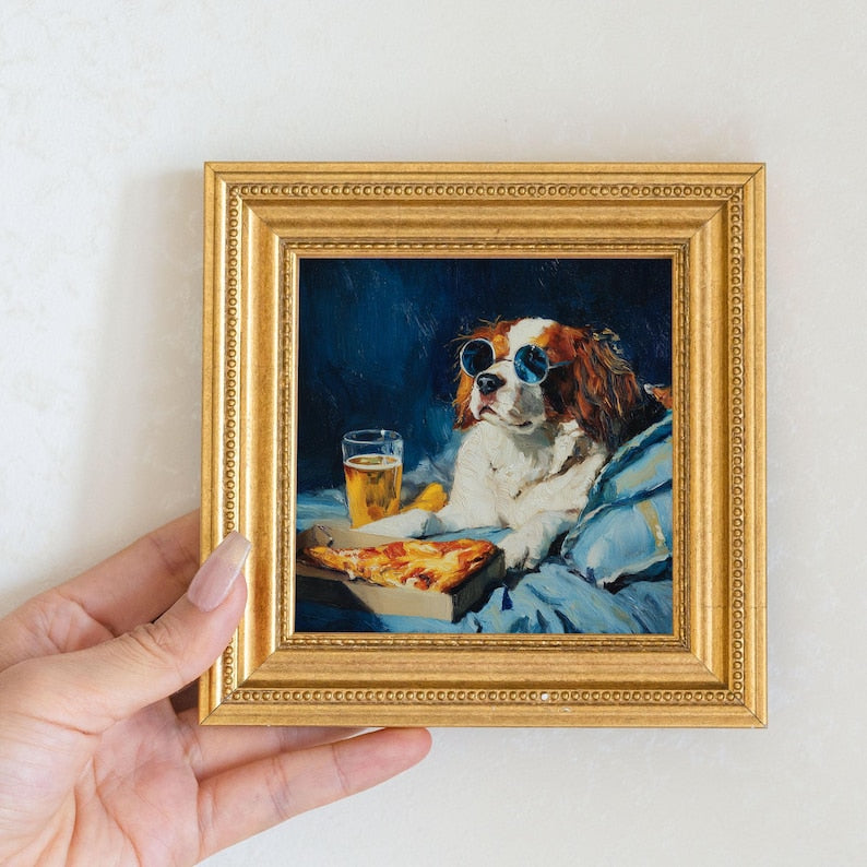 Mini Cavalier King Charles Spaniel Dog Oil Painting, Hand-Painted Puppy Wall Art for Home, Office, Bar & Gift for Dog Lovers and Pet Lover