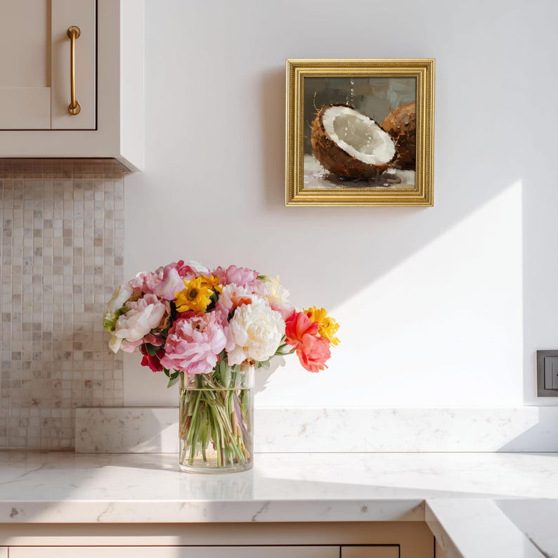 Mini Coconut Oil Painting-Healthy Fruit Still Life Artwork-Hand-Painted Kitchen or Living Room Wall Art Decor-Gift For Wall Art Lover