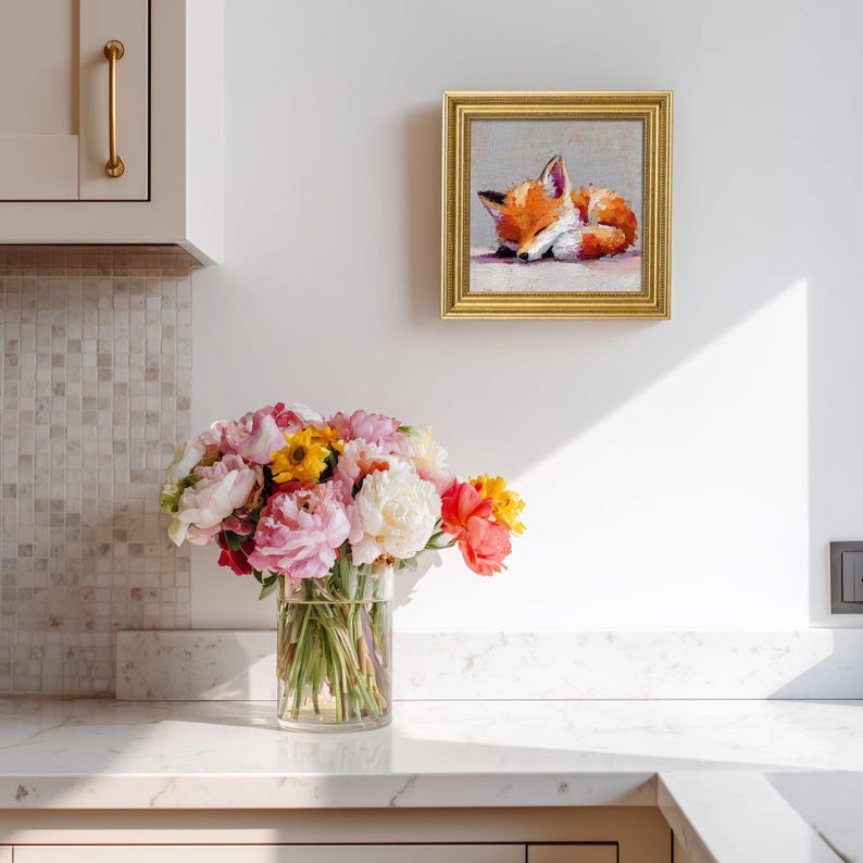 Mini Fox Oil Painting: Golden Beaded Frame, Woodland Animal Art
