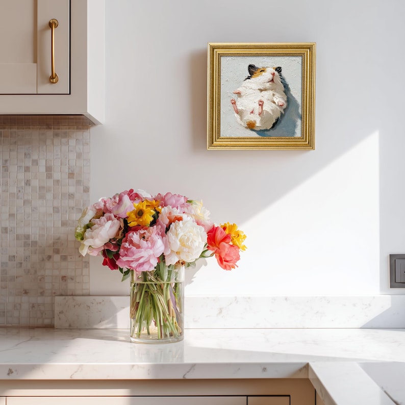 Mini Hamster Oil Painting in Golden Frame: Adorable Pet Portrait