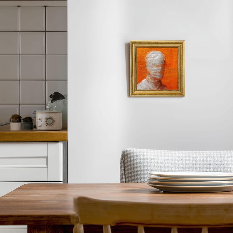 Mini Mummy Oil Painting in Gold Frame: Spooky Halloween Decor
