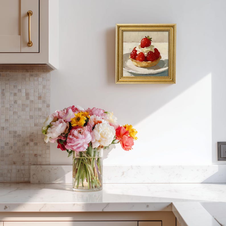 Mini Strawberry Tart Oil Painting-Still Life Dessert Wall Art-Original Painting-Kitchen and Living Room Wall Decor-Gift For Wall Art Lover