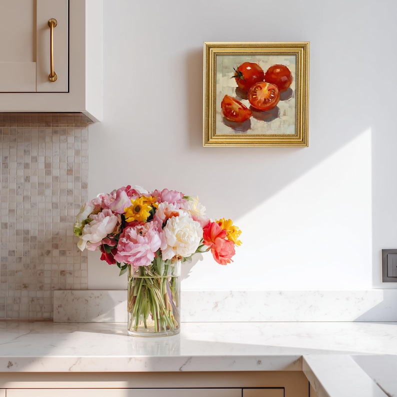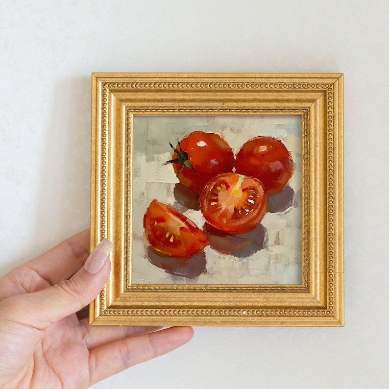 Mini Tomato Still Life Painting-Fresh Fruit Wall Art-Kitchen Decor-Handmade Oil Painting-Vegetable Artwork-Gift For Tomato Lover