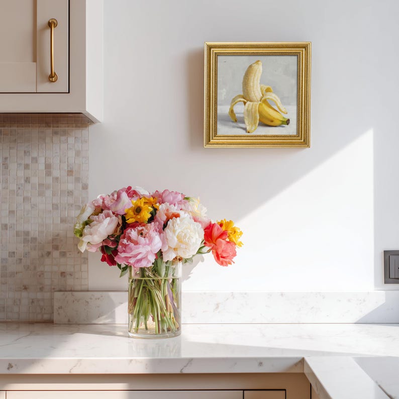 Still Life Banana Oil Painting: Kitchen Wall Art Decor, 5X5 Canvas Artwork Gift