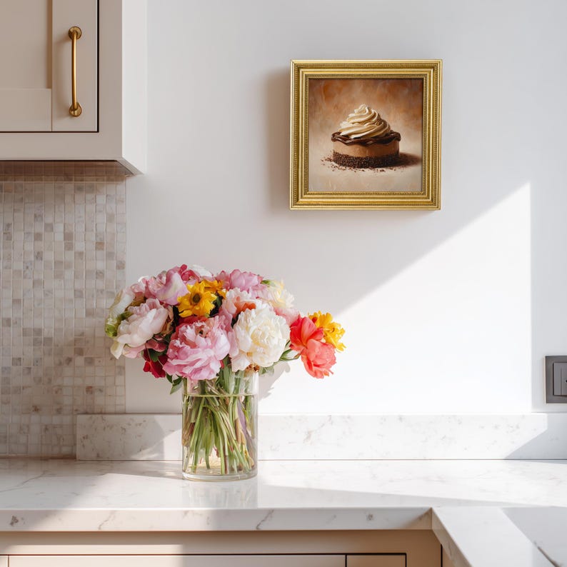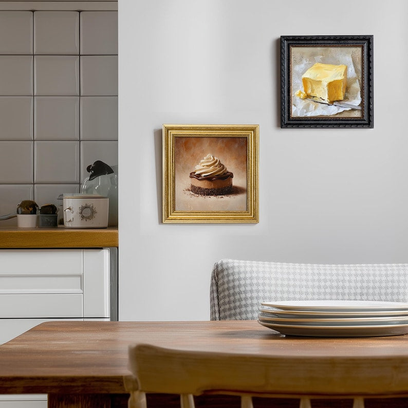 Still Life Chocolate Dessert Oil Painting: Kitchen Wall Art Decor, 5X5 Housewarming Gift