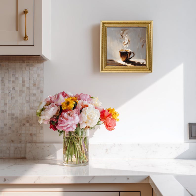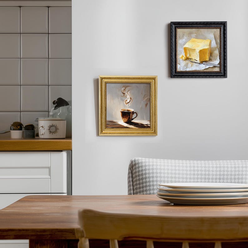 Still Life Coffee Oil Painting: Kitchen Wall Art Decor, 5X5 Housewarming Gift