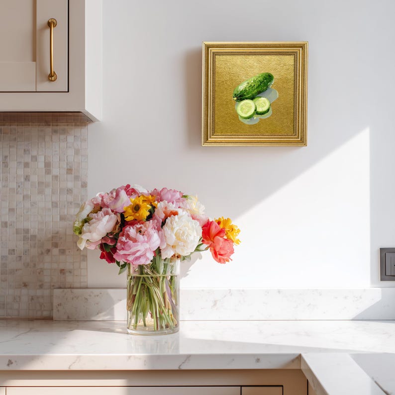Still Life Cucumber Oil Painting: Kitchen Wall Art Decor, 5X5 Housewarming Gift