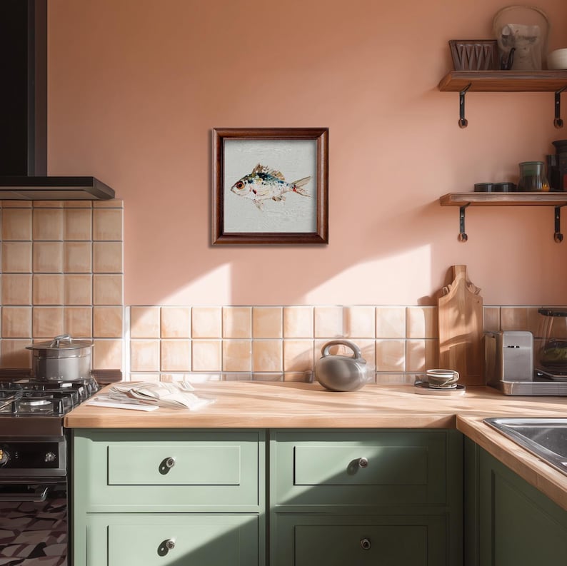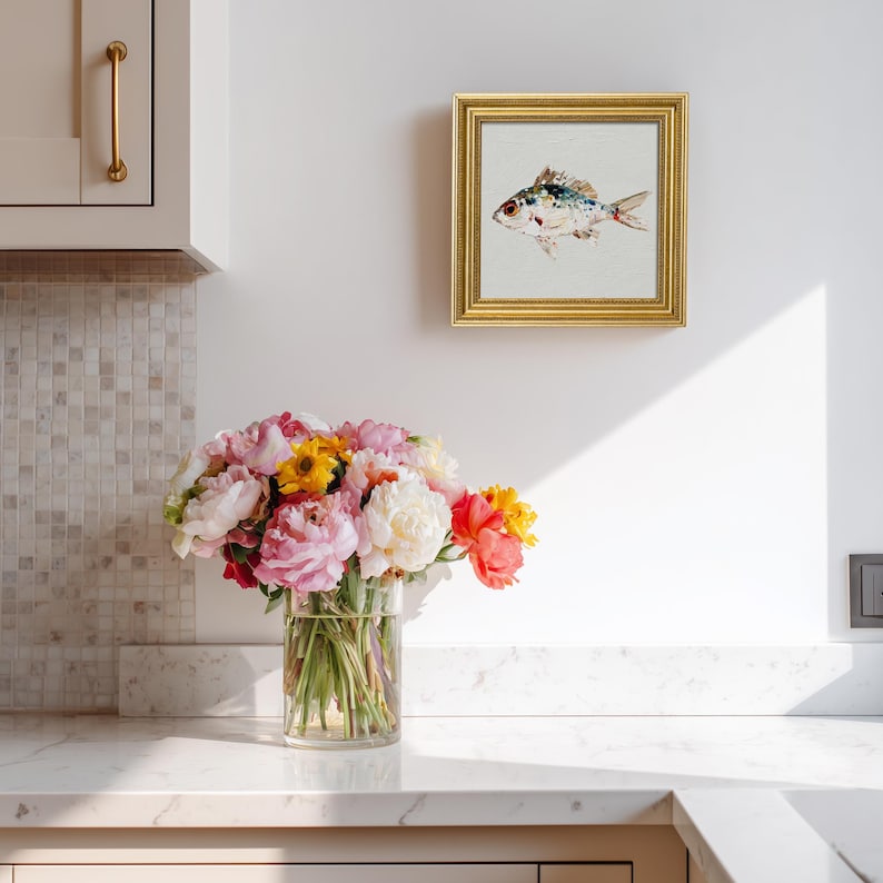 Still Life Fish Oil Painting: Kitchen Wall Art Decor, 5X5 Hand-Painted Housewarming Gift