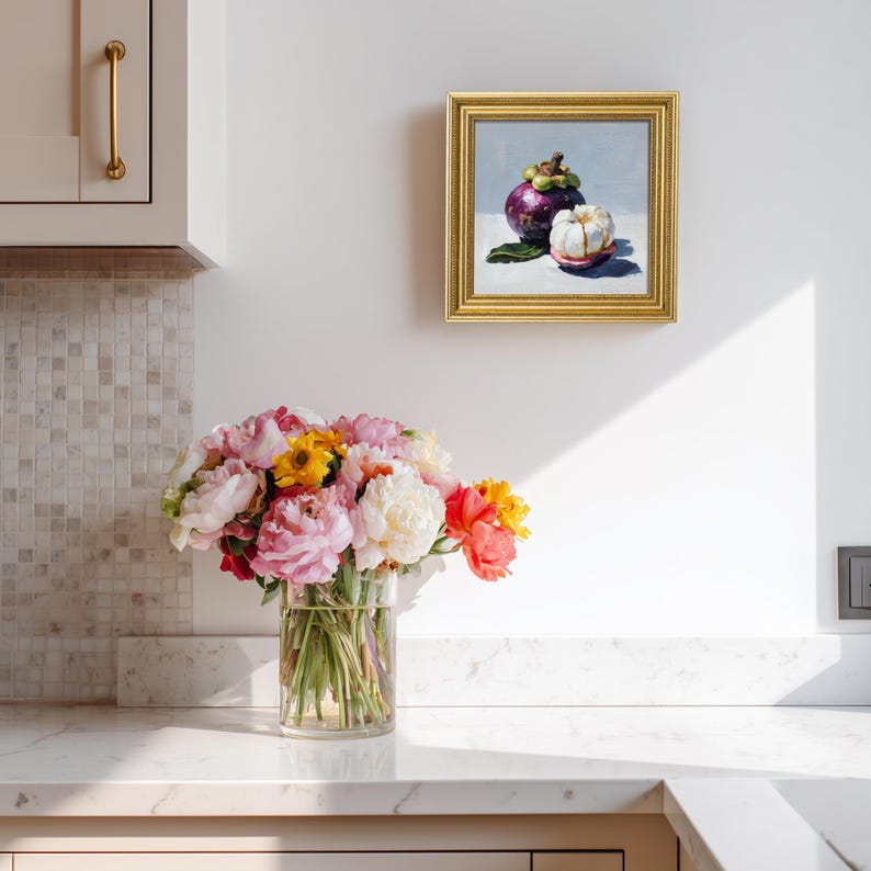 Still Life Mangosteen Oil Painting: Dining Room Wall Art Decor, 5X5 Artwork Gift