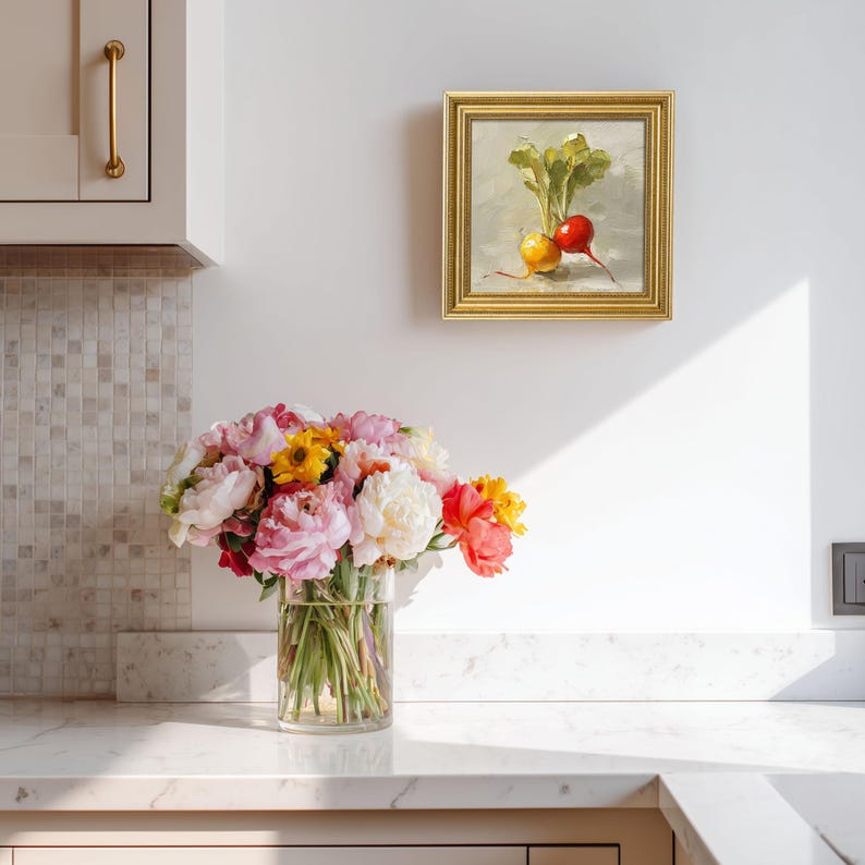 Still Life Radish Oil Painting : Rustic Kitchen Wall Art Decor, 5X5 Canvas Artwork