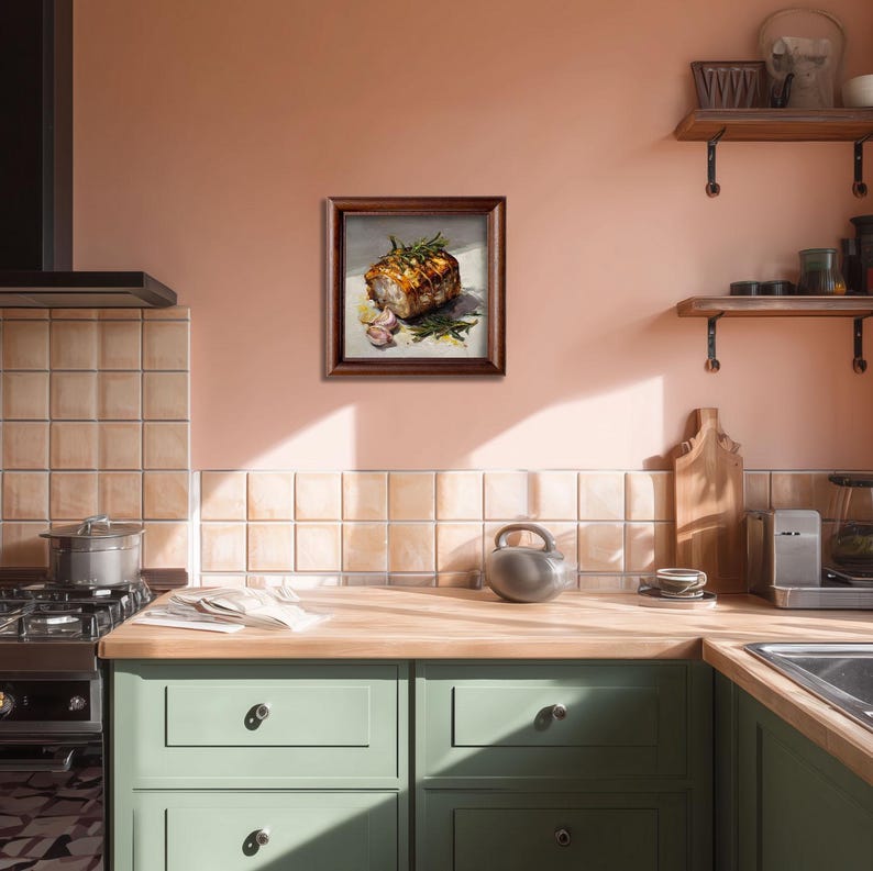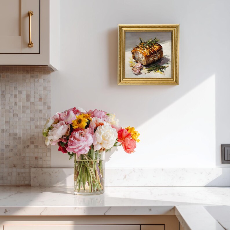 Still Life Smoked Roast Pork Oil Painting: Kitchen Wall Art Decor, Housewarming Gift